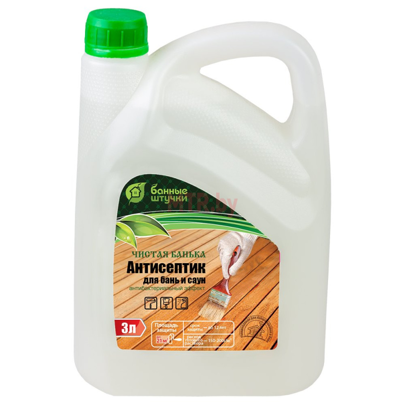 Антисептик для древесины Банные штучки используется как чистящее и дезинфицирующее средство.