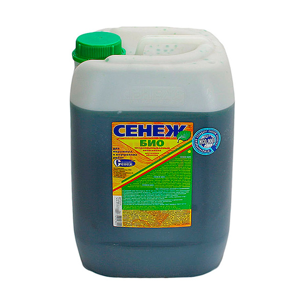 Антисептик Сенеж Био предназначен для усиленной защиты древесины от гниения, плесени, синевы и насекомых-древоточцев при эксплуатации в непосредственном контакте с человеком и домашними животными внутри помещений и на открытом воздухе в особо тяжелых условиях увлажнения, длительном воздействии атмосферной или почвенной влаги, при контакте с грунтом, органическими отходами, в том числе, в условиях тропического и тропического влажного климата самостоятельно или в качестве биозащитной грунтовки под ЛКМ.