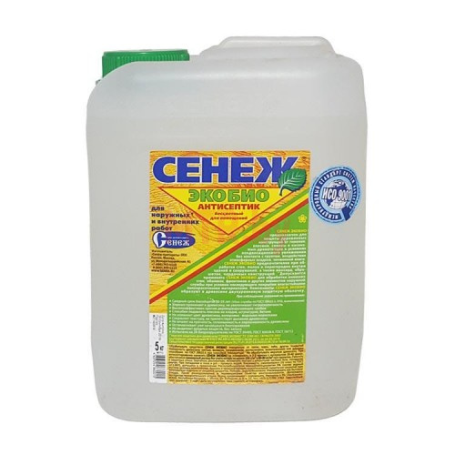 Антисептик Сенеж Экобио предназначен для защиты древесины от гниения, плесени, синевы и насекомых-древоточцев внутри помещений и на открытом воздухе (под навесом) в условиях гигроскопического и конденсационного увлажнения без контакта с грунтом, воздействия атмосферных осадков, почвенной влаги самостоятельно или в качестве биозащитной грунтовки под ЛКМ. Допускается применять Сенеж Экобио для защиты элементов наружной службы, подверженных атмосферным осадкам, при последующем покрытии влагостойким лакокрасочным материалом.