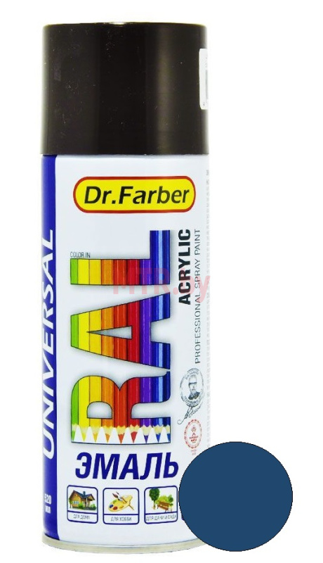 Акриловая эмаль-аэрозоль Dr.Farber универсальная серийно выпускается в 19 цветах. Эмаль применяется для быстрого и равномерного окрашивания, декоративного оформления и ремонта небольших по размеру объектов и бытовых изделий, элементов ландшафтного, интерьерного дизайна, не подвергающихся механическим нагрузкам.