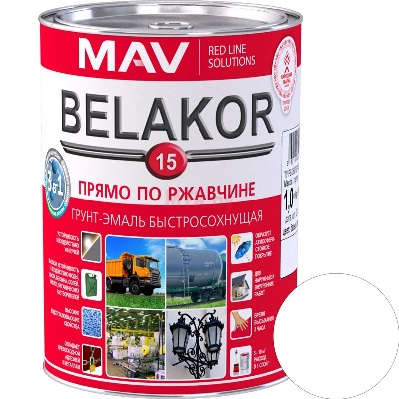 Грунт-эмаль по ржавчине Belakor 15 3 в 1 белая матовая 2,4 л