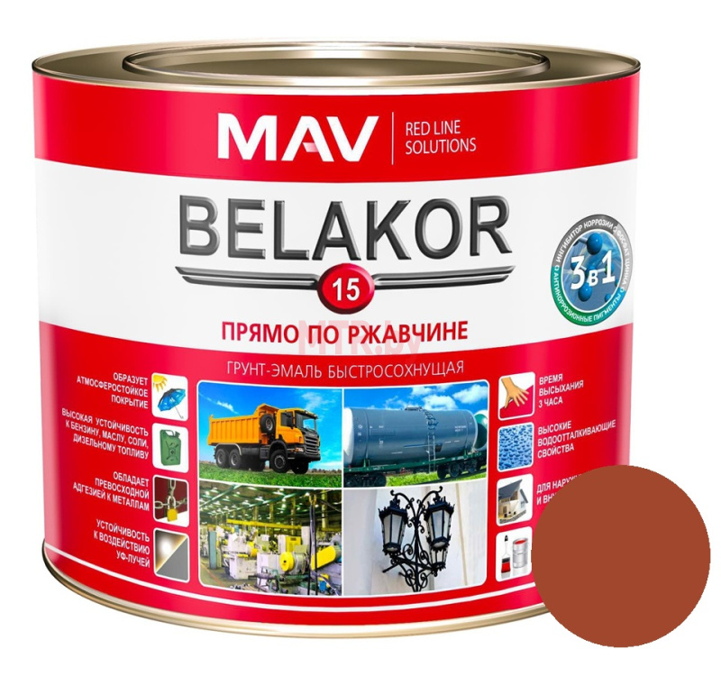 Грунт-эмаль по ржавчине Belakor 15 3 в 1 красно-коричневая матовая 1,0 л