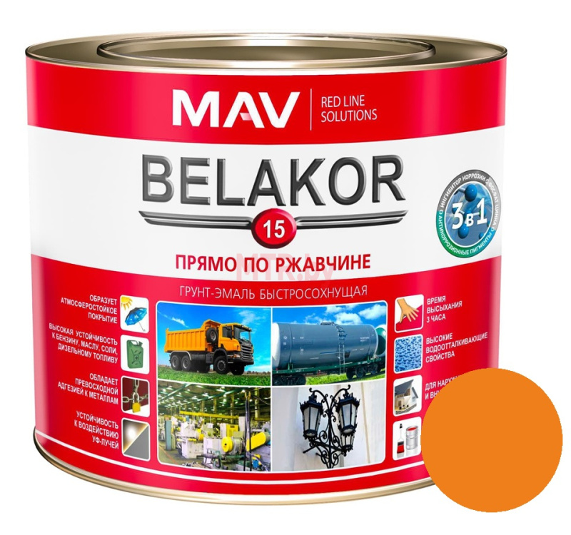 Грунт-эмаль по ржавчине Belakor 15 3 в 1 RAL 2008 оранжевая матовая 2,4 л