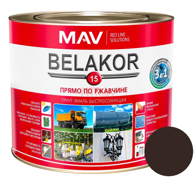 Грунт-эмаль по ржавчине Belakor 15 3 в 1 RAL 8017 шоколадная матовая 2,4 л