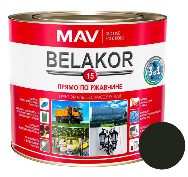 Грунт-эмаль по ржавчине Belakor 15 3 в 1 RAL 9004 черная матовая 2,4 л