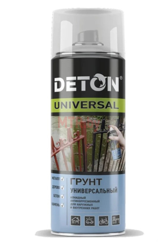 Быстросохнущий высококачественный алкидный грунт в аэрозоле белого цвета DETON UNIVERSAL предназначен для грунтования металлических и деревянных поверхностей под покрытие различными эмалями. Эффективная комбинация антикоррозионных пигментов и целевых добавок обеспечивают длительную защиту нанесенных на грунт покрытий от негативного воздействия окружающей среды. Грунт обладает отличной адгезией и хорошей укрываемостью.