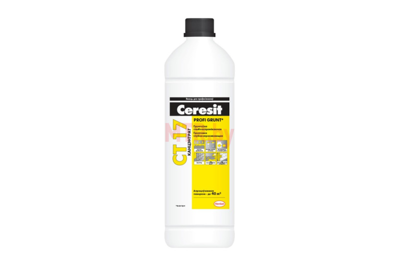 Грунтовка Ceresit CT 17 Profi Grunt применяется для поверхностного укрепления и пропитки пористых, непрочных и сильновпитывающих минеральных оснований (легкий бетон, штукатурка, гипсовые и кирпичные поверхности) внутри и снаружи зданий перед укладкой керамической плитки, приклеиванием теплоизоляционных плит, шпатлеванием, оштукатуриванием, окраской, устройством самонивелирующихся цементных покрытий на полах. Ceresit CT 17 Profi Grunt особенно рекомендуется для грунтования ангидритовых, гипсовых, ячеисто-бетонных оснований. Грунтовка проникает в основание и связывает зерна наполнителя, однако при этом не увеличивает прочностные параметры по всему сечению основания.