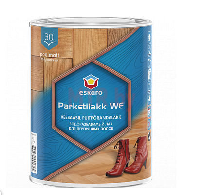 Лак акриловый Eskaro Parketilakk WE для деревянных полов прозрачный 3 л