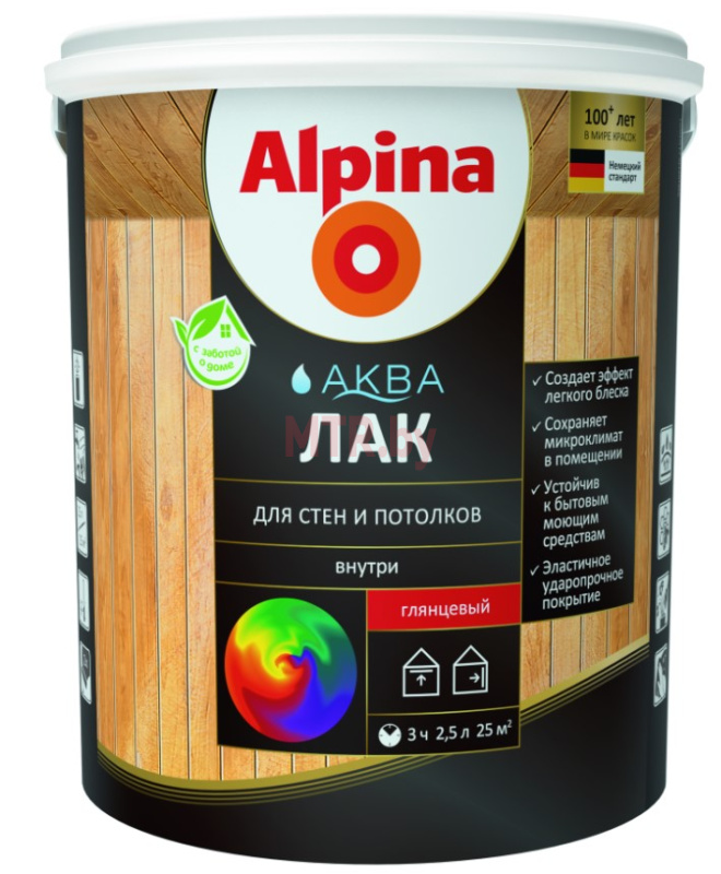Для лакирования деревянных поверхностей и обработки минеральных оснований внутри помещений. Применим для придания влаго- и износоустойчивости, легко очищается. Подходит для декоративной отделки и защиты деревянных поверхностей, эксплуатируемых внутри помещения, за исключением полов и поверхностей, подвергающихся сильной механической нагрузке. Для паркета и деревянных полов следует использовать лак Alpina Аква Лак для паркета и полов. Для здорового климата в помещении.
