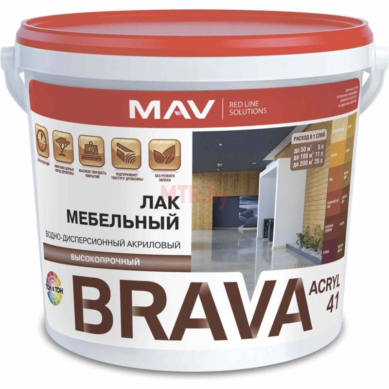 Назначение: Лак мебельный BRAVA ACRYL 41 (ВД-АК-2041) предназначен для высококачественной декоративной отделки и защиты поверхностей из массива древесины, MDF, изделий, облицованных натуральным или искусственным шпоном (межкомнатные двери, лестничные перила, вагонка, плинтуса, бревна, брусья, стеновые и потолочные панели, элементы мебели и т.п., кроме полов), эксплуатируемых внутри помещений.
