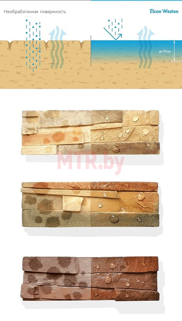 Лак Elcon Weston с эффектом «мокрого камня» предназначен для защитно-декоративной окраски искусственного и натурального камня внутри и снаружи помещений.