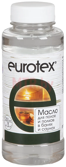Масло для дерева Eurotex применяется в парильных, помывочных и прочих помещениях бань и саун по любым вертикальным и горизонтальным поверхностям, в том числе полам и полкам.
