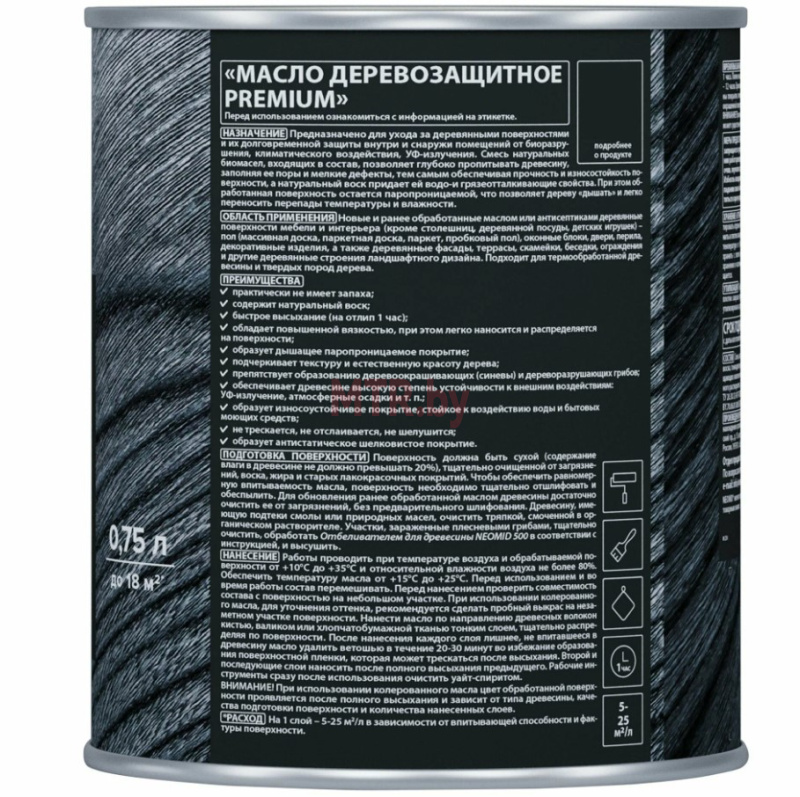 Поверхность должна быть сухой (содержание влаги в древесине не должно превышать 20%), тщательно очищенной от загрязнений, воска, жира и старых лакокрасочных покрытий. Чтобы обеспечить равномерную впитываемость масла, поверхность необходимо тщательно отшлифовать и обеспылить. Для обновления ранее обработанной маслом древесины достаточно очистить ее от загрязнений, без предварительного шлифования. Древесину, имеющую подтеки смолы или природных масел, очистить тряпкой, смоченной в органическом растворителе. Участки, зараженные плесневыми грибами, тщательно очистить, обработать Отбеливателем для древесины NEOMID 500 в соответствии с инструкцией, и высушить.