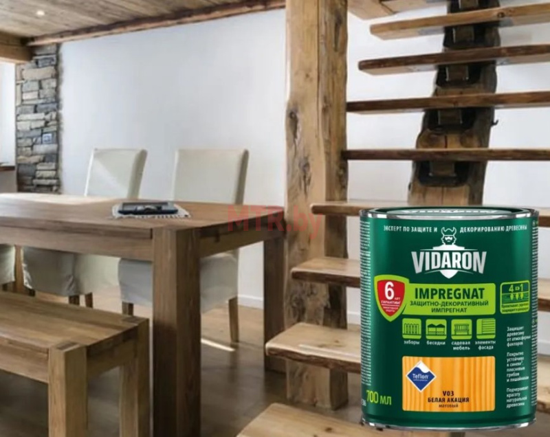 Пропитка Vidaron Impregna предназначена для защиты сырой древесины и деревопроизводных материалов. Придает пропитанным элементам элегантное матовое покрытие, подчеркивающее природный рисунок слоев древесины.
