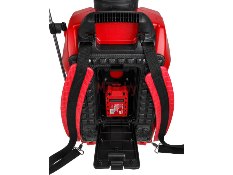 Аккумуляторный опрыскиватель Wortex KS 1640 Li All1 XLT SET оборудован 16-литровым баком для жидкости, функционирует от литий-ионной батареи.