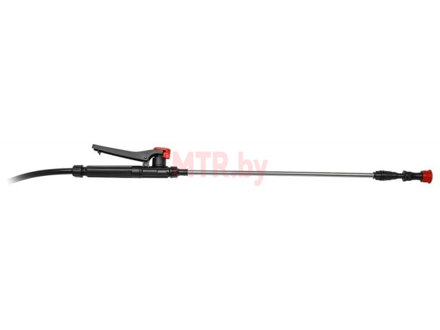 Длина трубки с ручкой составляет 80 см, в собранном виде - 40 см. Распыление около 5 метров.