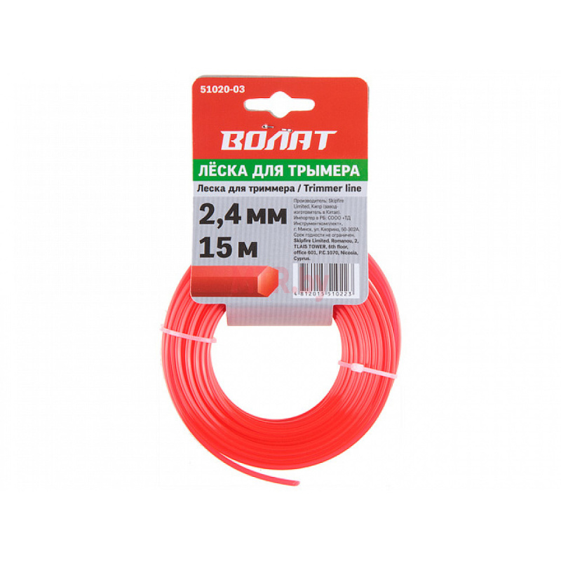 Леска для триммера Волат шестигранник 2.4мм*15м (51020-03)