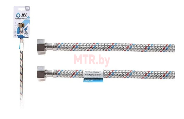 Гибкая подводка для воды гайка 1/2" - гайка 1/2" 150 см AV ENGINEERING (AVE200150) — приспособление, позволяющее соединять два стационарных вывода воды, причем они (выводы) могут располагаться под любым углом и на любом расстоянии друг от друга. Подводка предназначена для подключения смесителя, бойлера, газового котла, унитаза к системе водоснабжения жилых и частных домов, промышленных предприятий. Отличается простотой монтажа, длительным сроком службы и универсальностью. Материал шланга: каучук (EPDM). Материал оплетки: нержавеющая сталь марки AISI 304.
