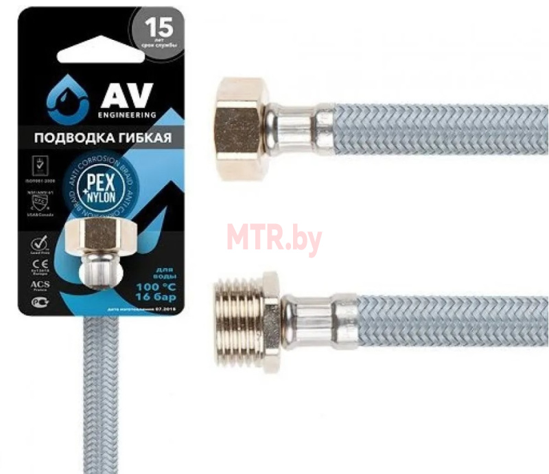Гибкая подводка для воды гайка-гайка AV Engineering 1/2"-1/2" 80 см нейлон