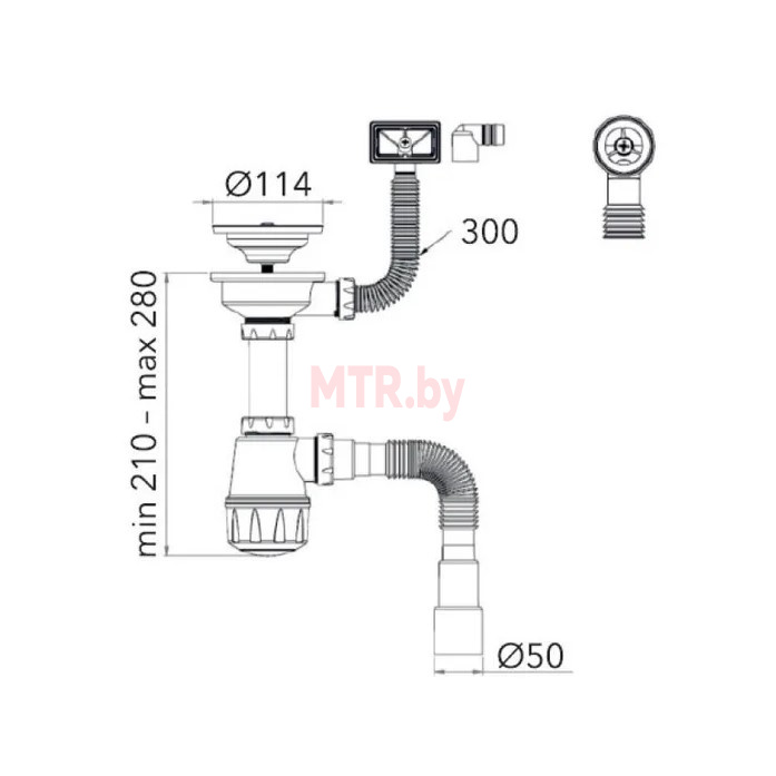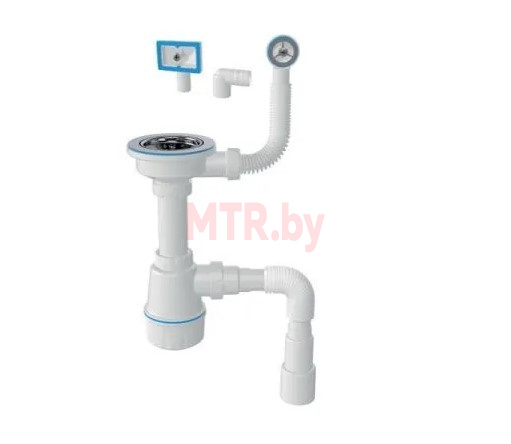 Сифон для кухни выпуск 3 1/2" круглый и прямоточный перелив гибкая труба 1/2" - 40/50 мм AV engineering (AVE129776) - сифон для керамической и нержавеющей мойки с выпуском 3 1/2".