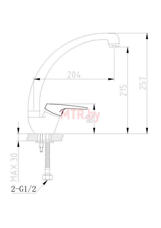 - Высота излива: 215 мм
