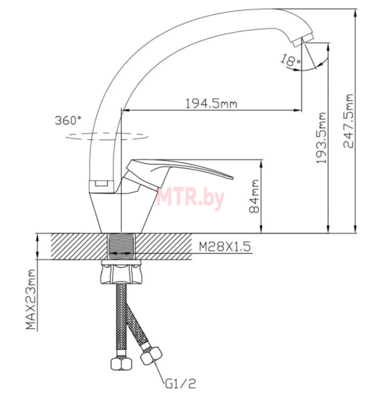 Смеситель выполнен из прочной высококачественной латуни, что гарантирует стабильность работы на протяжении долгого времени. Он предназначен для вертикального монтажа на мойку и комплектуется гибкой подводкой, что делает установку простой и удобной.