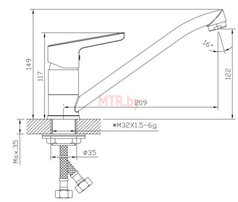 Высота излива, мм