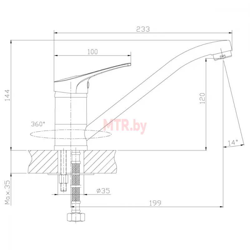 Смеситель для кухни поставляется с керамическим картриджем 35 мм, обеспечивающим полный контроль над параметрами потока воды.