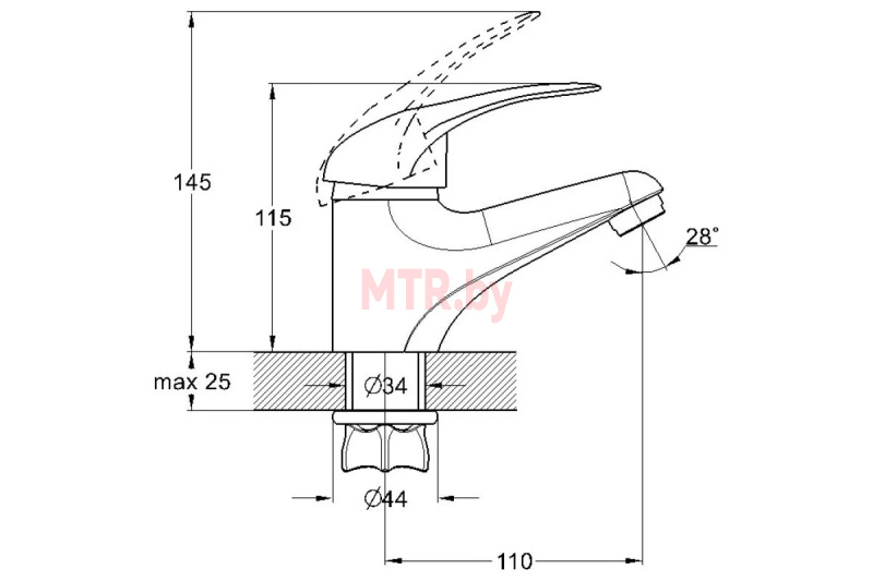 Высота излива, мм