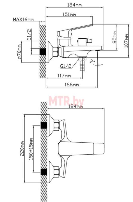 Установка смесителя осуществляется на стену, что позволяет сэкономить пространство и обеспечить удобство использования. Тип крепления — S-образные эксцентрики, что гарантирует надёжную фиксацию и стабильность конструкции. Короткий монолитный излив смесителя делает его удобным в использовании. Запорный механизм картриджа D35 обеспечивает плавное и точное регулирование напора воды, а углы поворота рукояток (вертикальный — 25°, горизонтальный — 50°) позволяют настроить комфортную температуру и напор воды.