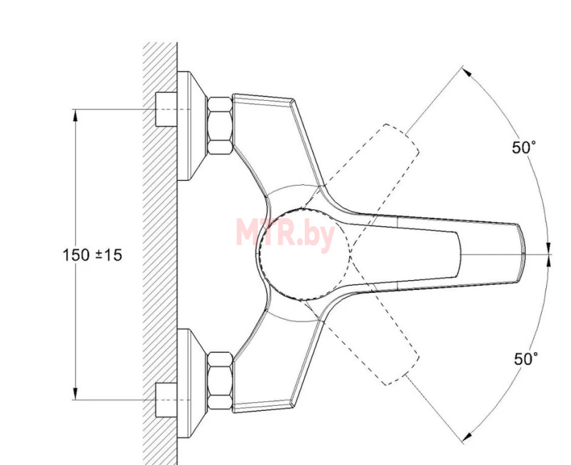 Данный смеситель для ванной комнаты имеет настенный монтаж и устойчивое хромированное покрытие, которое защищает сантехнику от воздействия агрессивных моющих средств, а также предотвращает появление разводов и пятен. Запорный механизм керамического картриджа D40-A обеспечивает плавное регулирование напора и температуры воды. Углы поворота рукояток (вертикальный — 25°, горизонтальный — 50°) позволяют легко настроить комфортную температуру и напор воды.