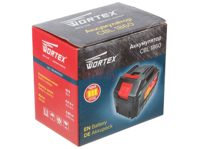 Аккумулятор 18 В 6 Ач Li-Ion WORTEX CBL 1860 ALL1 (CBL18600029) для линейки инструмента WORTEX на 1 аккумуляторе ONE FOR ALL.