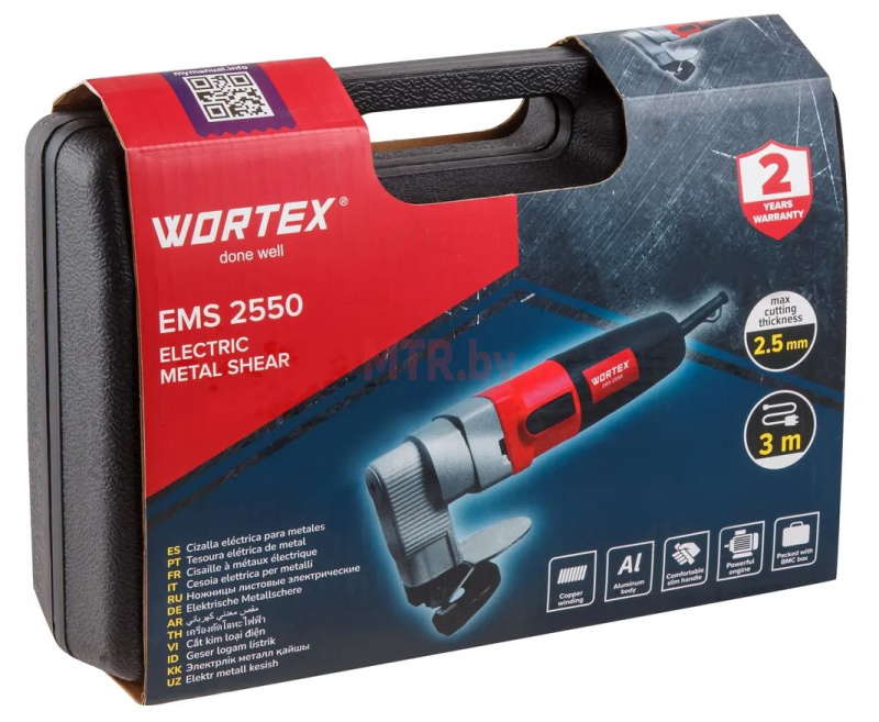Ножницы листовые WORTEX EMS 2550 (1334478) используются для резки металла, представленного листами: сталь, цветные металлы, нержавеющая сталь. Принцип работы электрических листовых ножниц схож с обыкновенными канцелярскими ножницами: двигается верхнее лезвие, а нижнее остается неподвижным. Лист металла делится ножницами на две части, разрез получается узкий, стружка не образуется. Используется преимущественно в работах по кровле, а также при отрезании прямых листов металла. Модель имеет ползунковый переключатель, а также защитный козырек для повышенной безопасности оператора. Ножи представлены четырьмя режущими кромками.