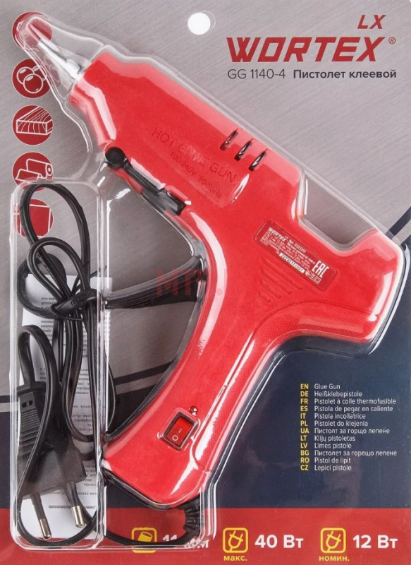 Пистолет клеевой электрический Wortex LX GG 1140-4 в блистере (0323217) подходит для фиксации различного рода материалов: пластика, картона, стекла, текстиля и др.