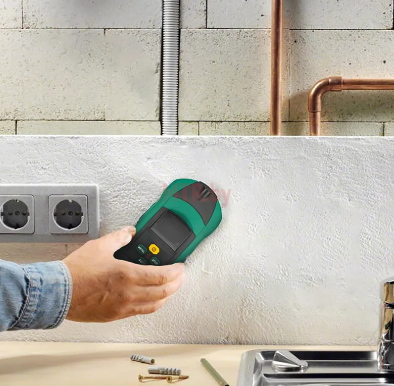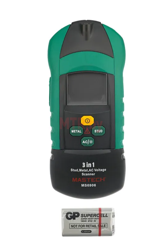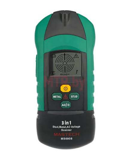 Детектор проводки MASTECH MS6906 — это многофункциональный прибор, включающий в себя большой набор возможностей. Предназначен для поиска металла, переменного напряжения, а так же скрытых конструкций. С его помощью вы сможете обнаружить винты, гвозди, саморезы, шпильки, иголки и другие металлические предметы на глубине до 30 мм, металлические трубы на глубине до 50 мм и напряжение на глубине до 75 мм. Результаты поиска отражаются на дисплее прибора и обозначаются с помощью звукового сигнала. Прибор окажется незаменим при ремонтных работах, на строительных площадках и даже дома, в быту.