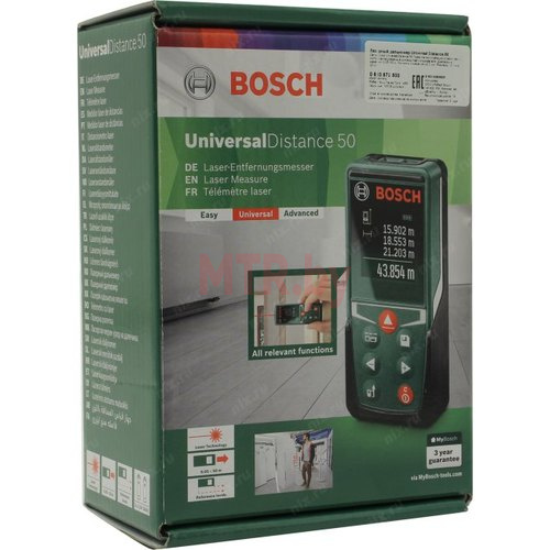 Дальномер лазерный BOSCH Universal Distance 50 позволяет производить точные лазерные измерения на расстоянии до 50 м. Встроенные функции простого измерения длины, площади и объема. Оптимальный инструмент для расчета площади, что позволяет определить нужное количество обоев или краски. Функции сложения / вычитания, измерения минимального / максимального значения, и 10 ячеек в памяти. Высококачественный цветной дисплей с оптимальной читаемостью.