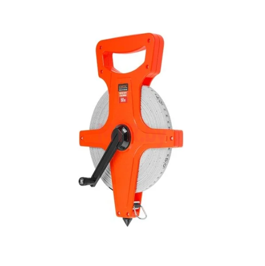 Мерная лента 50 м используется при проведении измерительных работ. Корпус открытый пластмассовый, в нижней части которого предусмотрен металлический наконечник для фиксации в земле.
