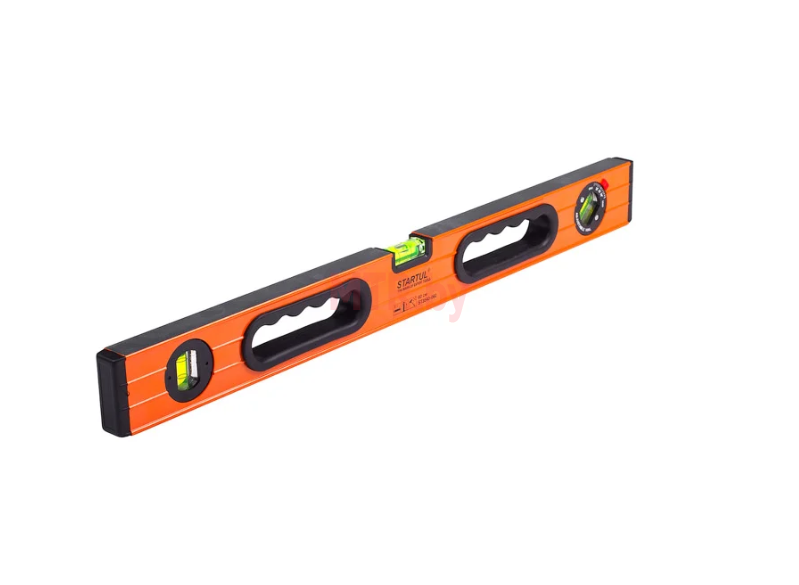 Уровень 1200 мм STARTUL Profi ST3540 (ST3540-120) имеет ударопрочный коробчатый профиль, выполнен из алюминия. На корпусе установлены 3 акриловые блочные колбы небьющиеся (1 колба – измерение горизонтали, 1 колба – поворотная для выставления нужного угла, 1 ватерпас – измерение вертикали). На концах изделия имеются пластмассовые концевые колпачки. Прорезиненные ручки для более удобного захвата.