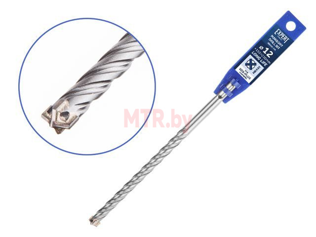 Бур (сверло) SDS-plus 12х150х210 мм STARTUL Expert (SE8312-210) используется для особо сложных работ при сверлении отверстий в железобетоне, бетоне, кирпичной кладке, камне, граните. Оснащен цельным X-образным твердосплавным наконечником Ceratizit повышенной твердости с четырьмя режущими кромками, который фиксируется особо прочным припоем, рассчитанным на высокие рабочие температуры и значительные ударные нагрузки. Центрирующий наконечник обеспечивает точное засверливание. 4 отдельные канавки быстро и эффективно удаляют шлам и повышают производительность. Тело сверла обладает большей жесткостью, а следовательно меньше подвержено колебаниям в процессе бурения, что улучшает точность просверленного отверстия, снижает износ тела бура и вибрации перфоратора. Подходит для интенсивных нагрузок.