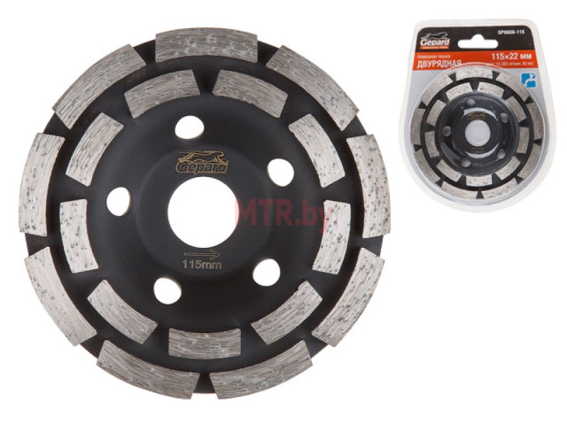 Чашка шлифовальная алмазная Gepard по бетону, двухрядная 115*22,2 мм