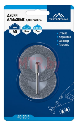 Диск отрезной для гравера Vertextools алмазный, с держателем 3*40 мм (2 шт)