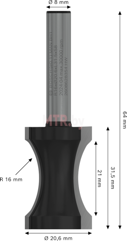 Фреза кромочная профильная Bosch сегментная 20,6*31,5 мм
