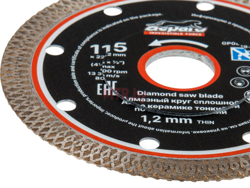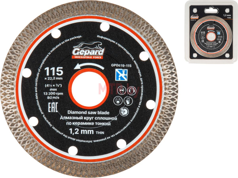 Круг (диск) отрезной алмазный Gepard сплошной по керамике тонкий 115*22,2 мм