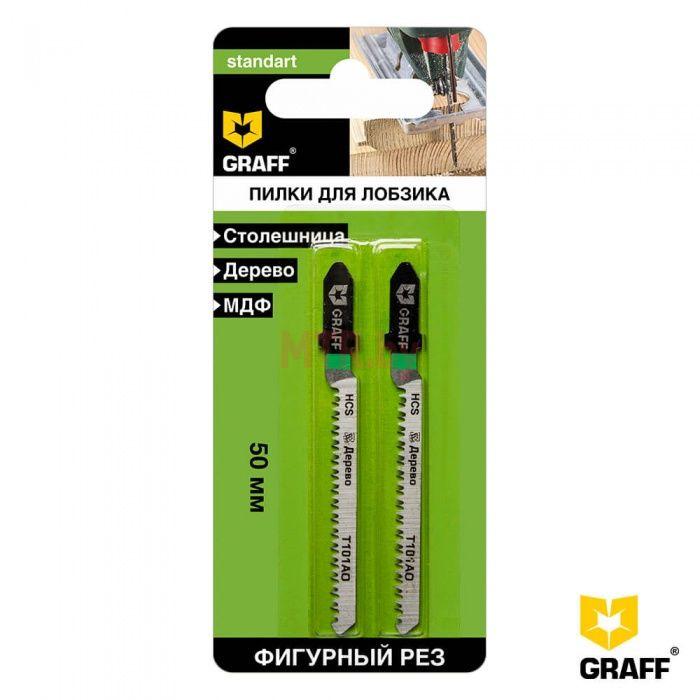 Пилка для лобзика 50 мм по дереву T101AO HCS GRAFF серия «Standart» изготовлена из высококачественной высокоуглеродистой стали, что обеспечивает длительный ресурс, и имеет Т-образный хвостовик, который подходит под большинство моделей современных электролобзиков. Шаг зубьев – 1,4 мм гарантирует чистый реза.