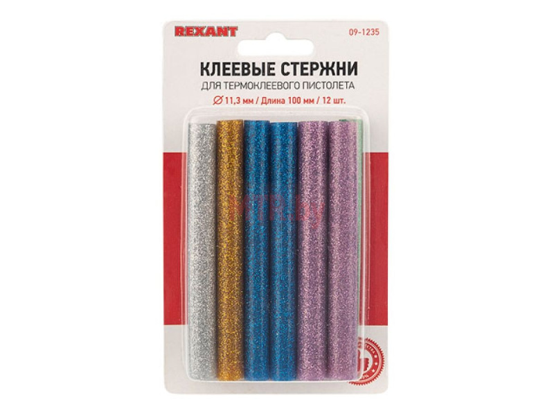 Стержень клеевой Rexant цветные с блестками Ø11,3*100мм, 12 штук