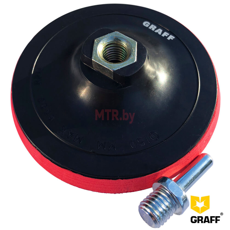 Шлифовальная тарелка 150 мм GRAFF для дрели и УШМ с посадочным отверстием М14 и переходником. Предназначена для шлифовки изделий в дерево- и металлообработке при помощи наждачной бумаги на самозацепляющейся основе.