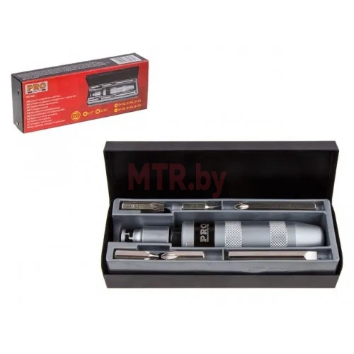 Отвертка ударно-поворотная с набором бит PRO STARTUL 7 предметов (PRO-6057) предназначена для монтажа и демонтажа резьбовых соединений с применением значительных усилий. Посадочным размер бит - 5/16". Рукоятка металлическая, с рифлением. Упаковка - металлический кейс.