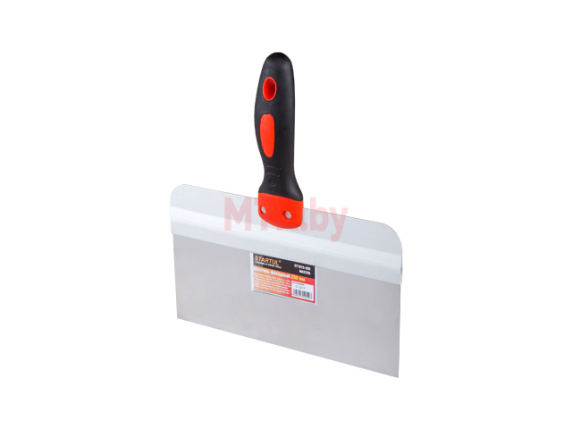 Шпатель нержавеющий фасадный 300 мм STARTUL MASTER (ST1015-300) основной инструмент при внутренней и внешней отделке помещений, представляет собой металлическую пластину прямоугольной формы с эргономичной пластиковой ручкой. Применяется при отделочных работах на больших площадях. Изготавливается из легированной стали для придания рабочей поверхности необходимой жесткости.