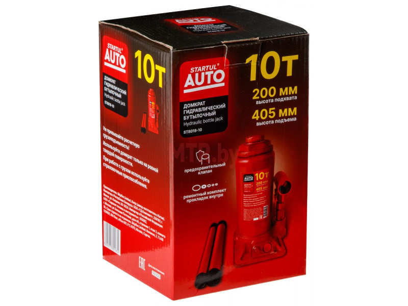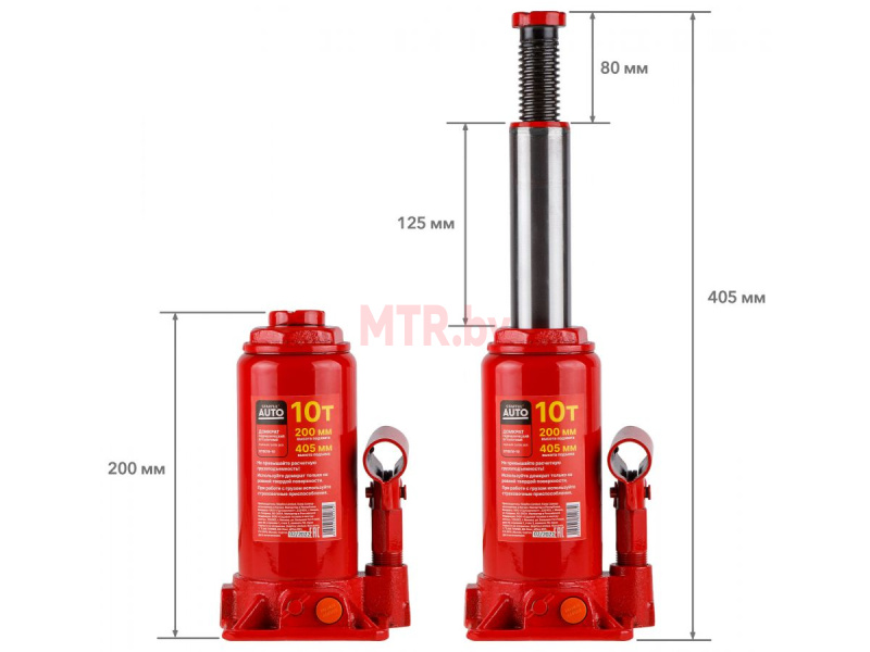 | Назначение | Гидравлический бутылочный домкрат представляет собой устройство с ручным приводом, предназначенное для поднятия и фиксации грузов. Домкраты данного типа могут использоваться в качестве рабочего элемента в более сложных устройствах, таких как прессы, трубогибы, подъемники. Домкраты оснащены специальным предохранительным клапаном, обеспечивающим защиту от перегрузки, и не позволяющим поднятия веса более допустимого |