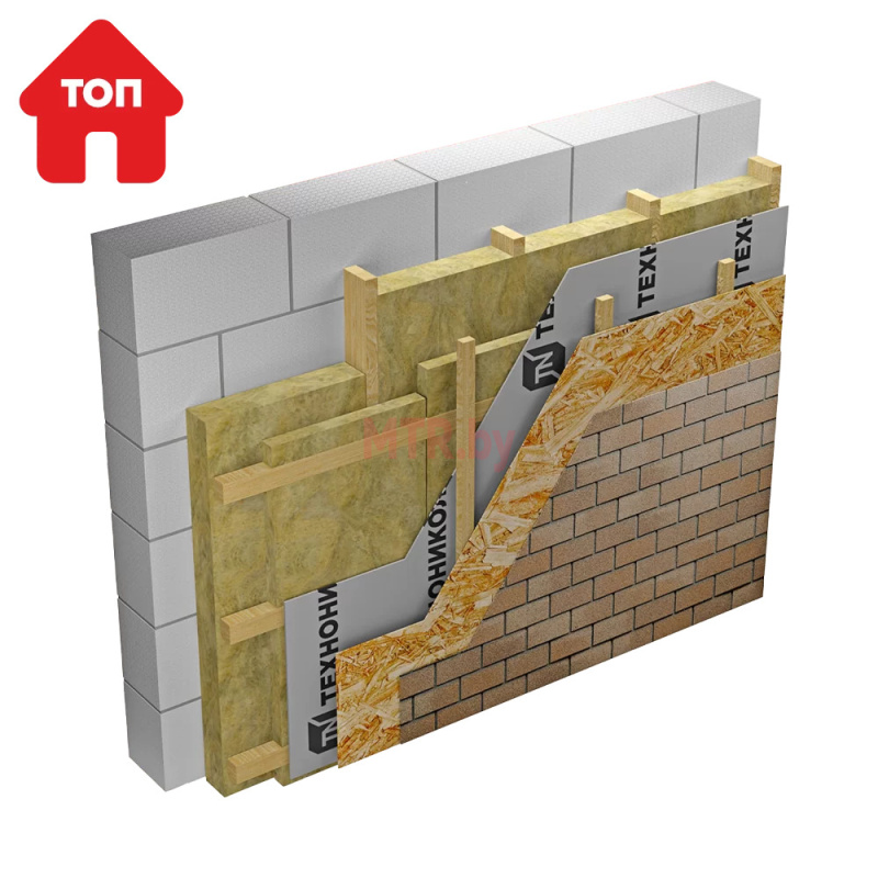 Минеральная стекловата Технониколь 34 PN Стены и крыши Проф создана для улучшения тепло- и звукоизоляции вертикальных, наклонных и горизонтальных поверхностей зданий.